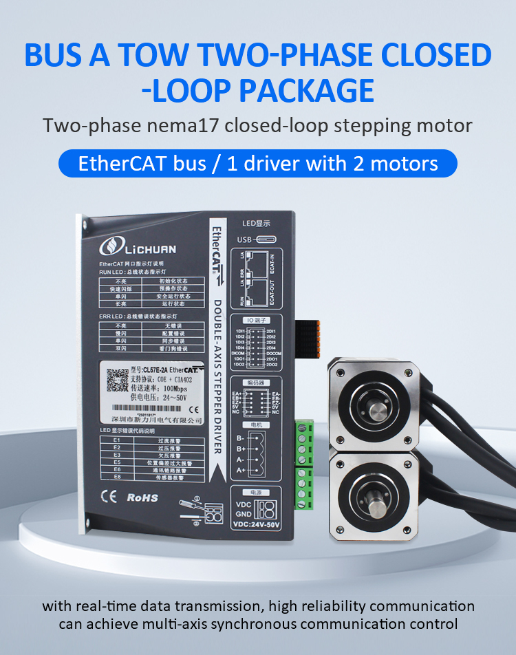 „EtherCAT“ 2 fazių „Nema24“ 2 ašių nuolatinės srovės uždarojo ciklo žingsninio variklio tvarkyklių rinkinys