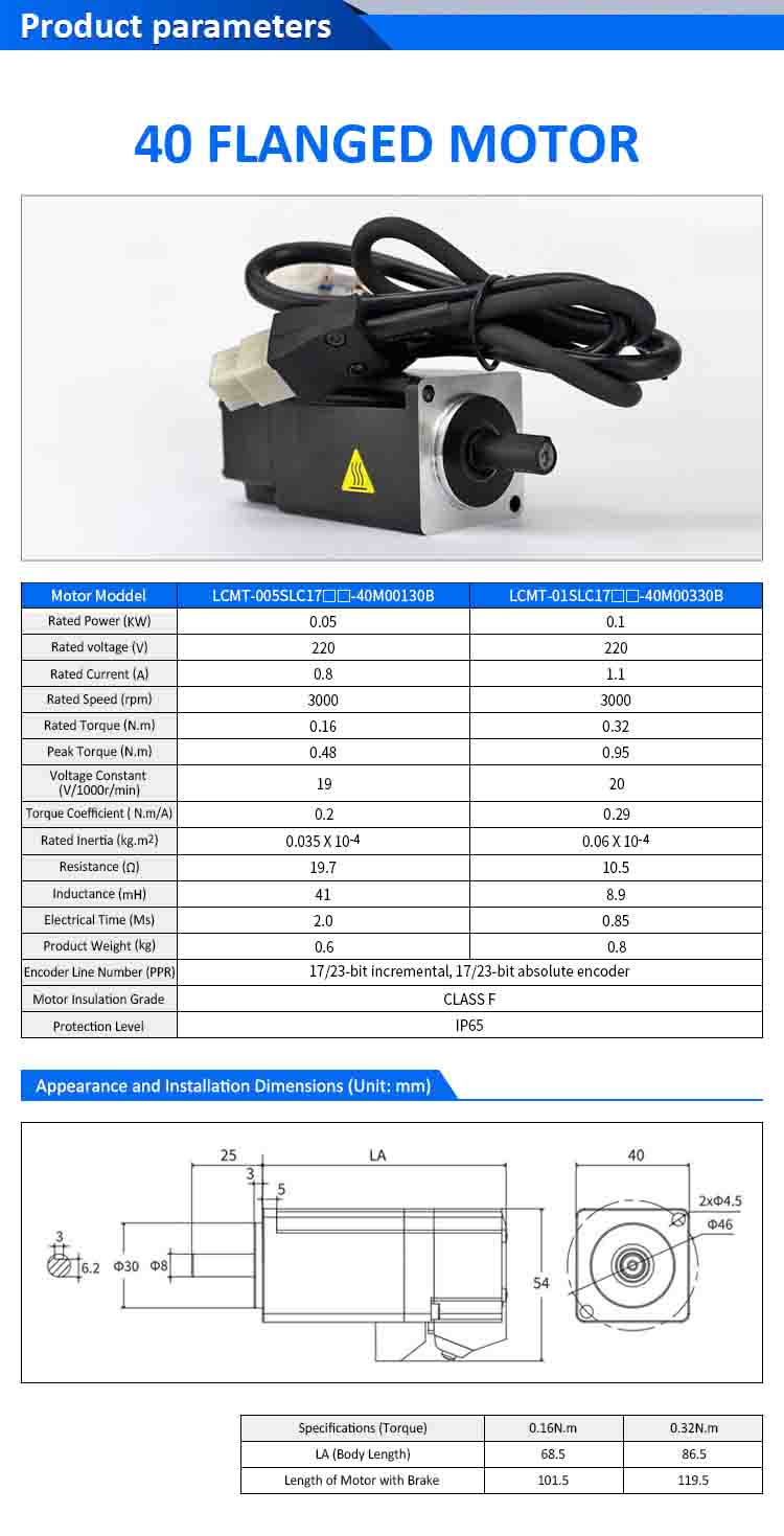 | Variklio modelis | LCMT-005SLC17-40M00130B | LCMT-01SLC17-40M00330B |