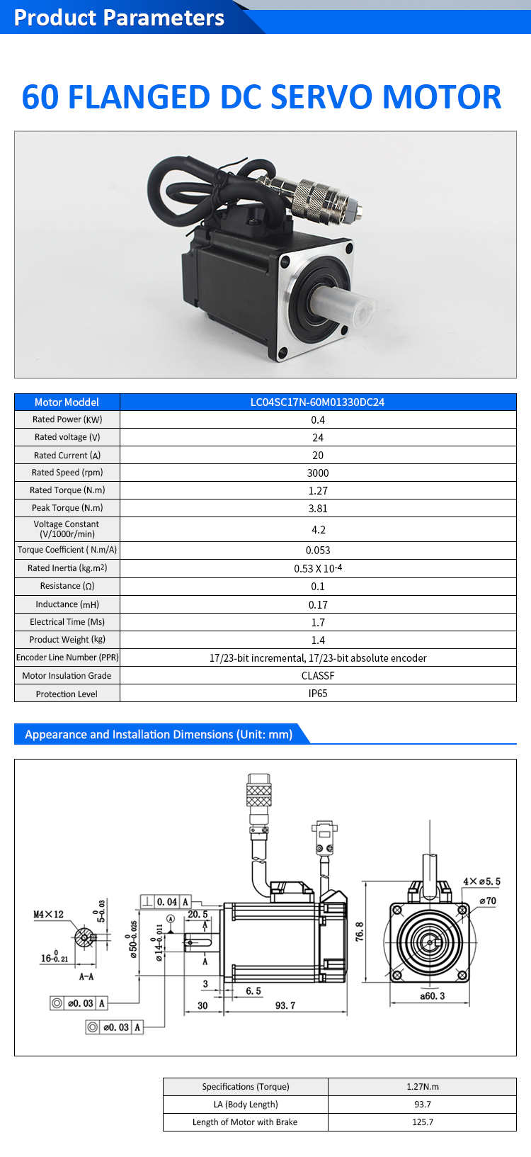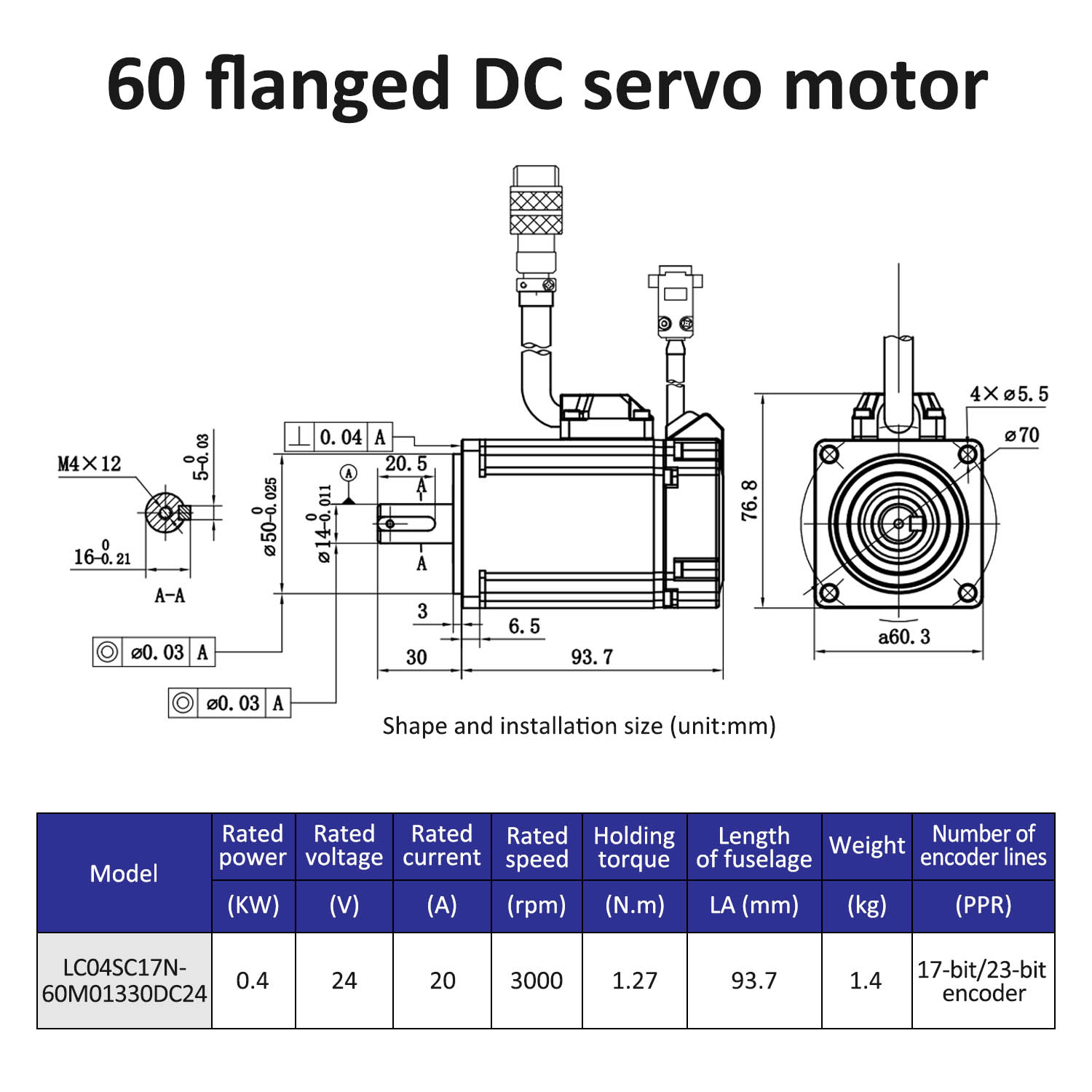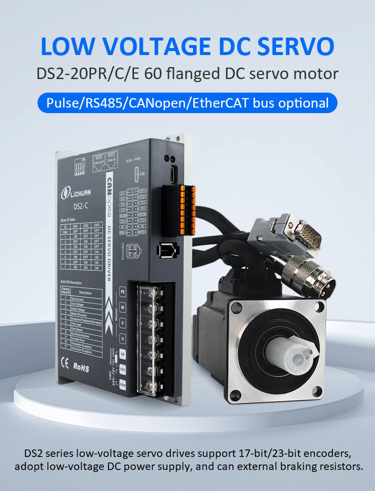 Pulse/RS485/CANopen/EtherCAT 60 FLANGED 200W/400W/600W žemos įtampos nuolatinės srovės servovariklio tvarkyklių rinkinys