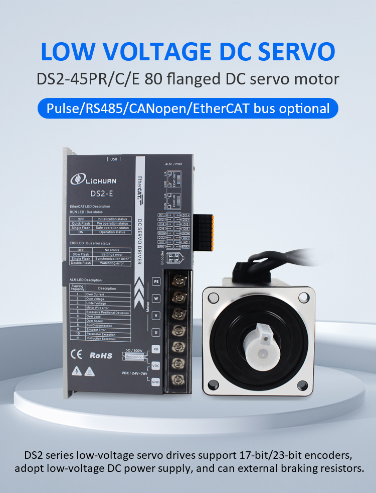 EtherCAT 2 fazių Nema24 4 ašių nuolatinės srovės uždarojo ciklo žingsninio variklio tvarkyklių rinkinysNauji produktai Pulse/RS485/CANopen/EtherCAT 80 FLANGED 1KW/1000W 17/23-bit prieauginio/absoliutaus kodavimo žemos įtampos nuolatinės srovės servovariklio tvarkyklių rinkinys, pagamintas Kinijoje su CE/ROHS iš LICHUAN®. Mūsų gamykla yra garsūs Pulse/RS485/CANopen/EtherCAT 80 FLANGED 1KW/1000W žemos įtampos nuolatinės srovės servo variklio tvarkyklių komplektų gamintojai ir tiekėjai Kinijoje. Mūsų gaminys yra aukštos kokybės / patvarus / stabilus ir pigus. Ir mes teikiame individualias paslaugas.